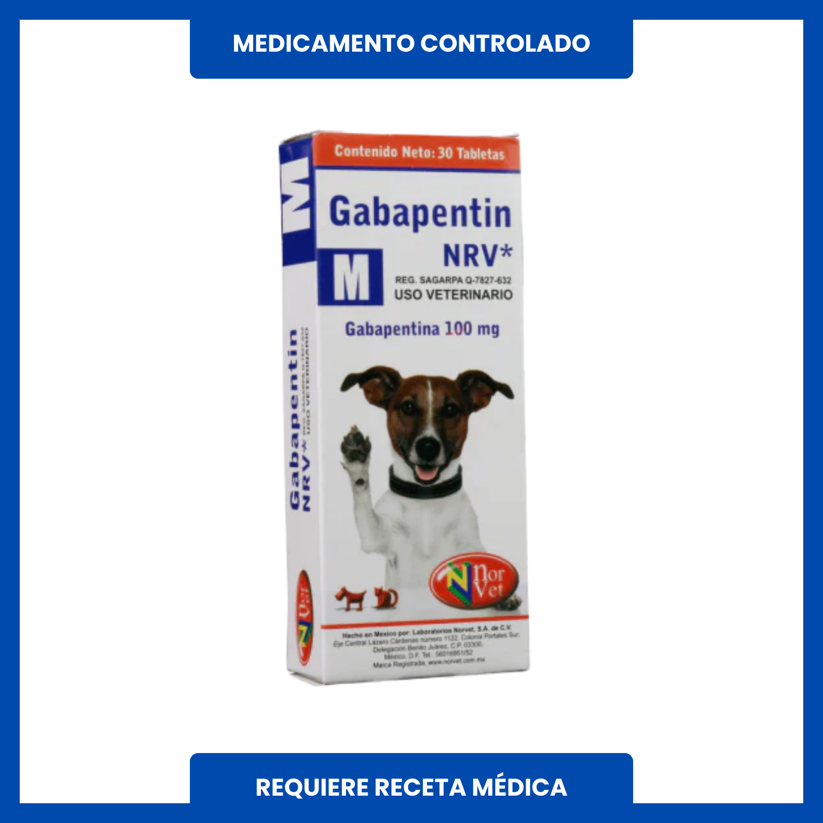Gabapentin M 100 MG 30 Tabletas - Norvet (Requiere Receta Cuantificada)